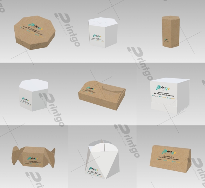 Bên cạnh bao bì hộp giấy đa giác, Printgo mang đến giải pháp toàn diện với đa dạng mẫu mã bao bì với nhiều kết cấu sang trọng, tinh tế, phù hợp với từng mục tiêu kinh doanh của doanh nghiệp. Tự hào là đơn vị thiết kế và in ấn bao bì chuyên nghiệp với nhiều năm kinh nghiệm, chúng tôi cam kết cung cấp những thiết kế sáng tạo nhất.