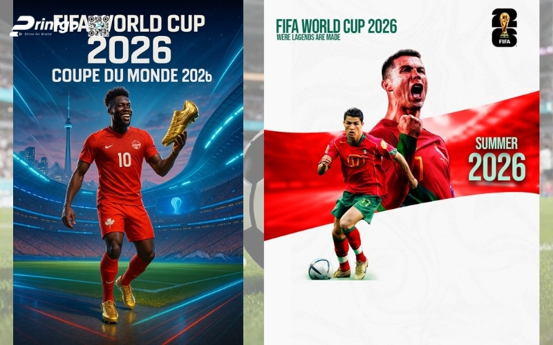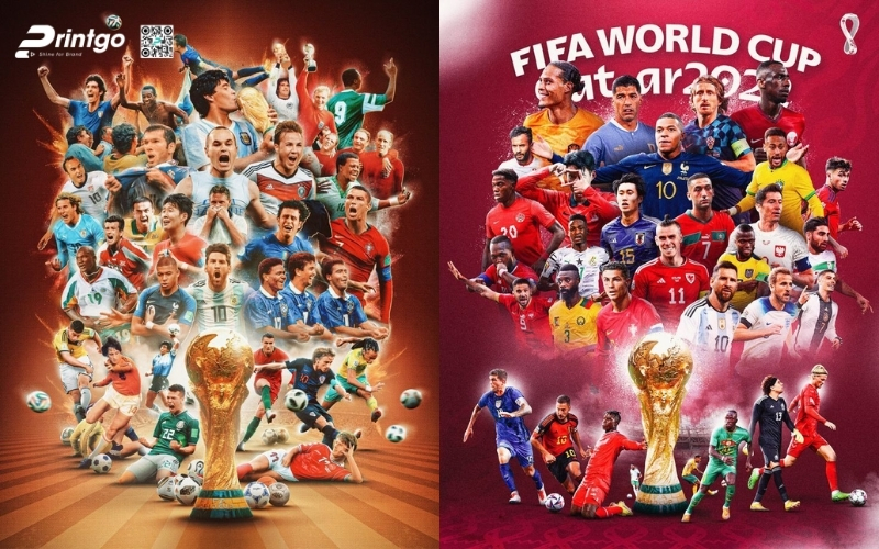 - Kết hợp yếu tố thương hiệu: So với việc dùng official poster World Cup 2026, poster thiết kế riêng có thể lồng ghép logo, slogan, giúp tăng khả năng nhận diện trong chiến dịch marketing.