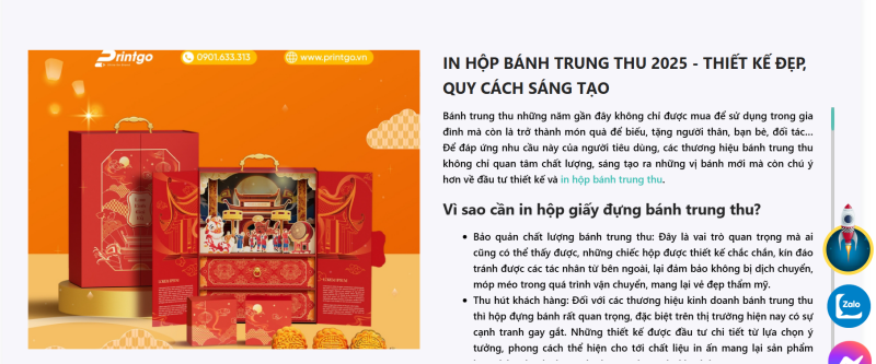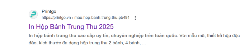 Bước 1: Mở trình duyệt Google và tìm kiếm từ khóa “In hộp trung thu”, sau đó nhấp vào trang website Printgo.vn để truy cập.