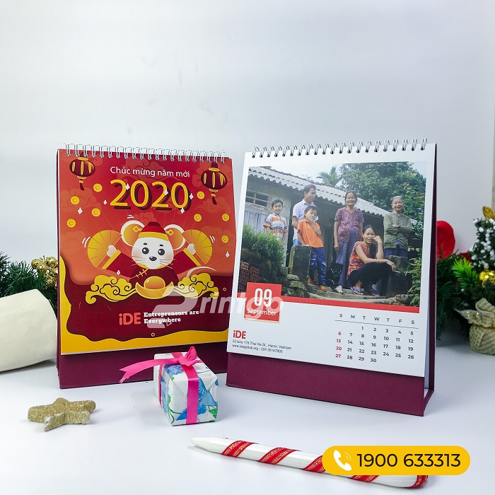 iDE - một tổ chức phi chính phủ tại Việt Nam với sứ mệnh mang đến một cuộc sống chất lượng hơn cho người dân vùng xa còn nhiều khó khăn, thiếu thốn. iDE đã triển khai hàng trăm chiến dịch thiện nguyện như vậy tại khắp các vùng trên toàn lãnh thổ Việt Nam. Khi chia sẻ với Printgo, iDE mong muốn có thể in được một bộ lịch Tết 2020 thật đặc biệt và ý nghĩa, vừa thể hiện được sứ mệnh của tổ chức, vừa mang đến cho mọi người một góc nhìn đa chiều trong cuộc sống. Thấu hiểu được mong muốn của iDE, Printgo tư vấn lựa chọn và sử dụng chính những bức hình mà iDE chụp được trong suốt quá trình vận hành tổ chức, và cuối cùng, bộ lịch để bàn dọc ấy đã được hoàn thành với thật nhiều ý nghĩa.