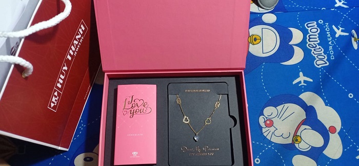 Ảnh hộp thực tế khách mua hàng tại Huy Thanh Jewelry
