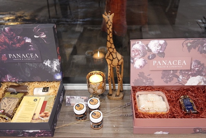 Bộ nhận diện thương hiệu Panacea có nhiều phiên bản khác nhau nhưng đều hướng đến một phong cách chung, tạo sự đồng bộ nhất định. Theo đó, hầu tất sản phẩm đều được sắp xếp với logo thương hiệu ở vị trí trung tâm, xung quanh là các họa tiết hoa lá trải đều. Riêng mẫu túi, cạnh bên được đính kèm mô tả địa chỉ giúp người tiêu dùng dễ dàng ghi nhớ thông tin liên hệ. Nhìn chung, từng món đồ, từng sản phẩm đều góp phần tạo nên sự thành công của thiết kế, từ đó đưa Panacea trở thành mẫu bao bì có một không hai, vô cùng bắt mắt và sáng tạo.