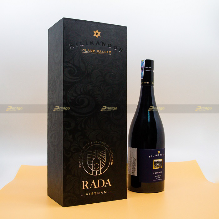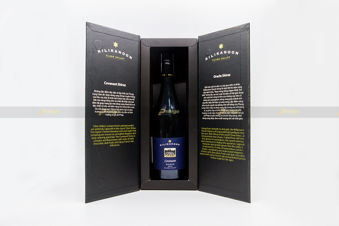 Hộp được làm từ carton lạnh bồi giấy mỹ thuật. Đặc biệt ở trong hộp còn được lót thêm các tấm xốp giúp bảo vệ chai rượu tránh bị vỡ trong quá trình vận chuyển. Điều này rất quan trọng đối với các sản phẩm được làm từ thủy tinh như rượu.