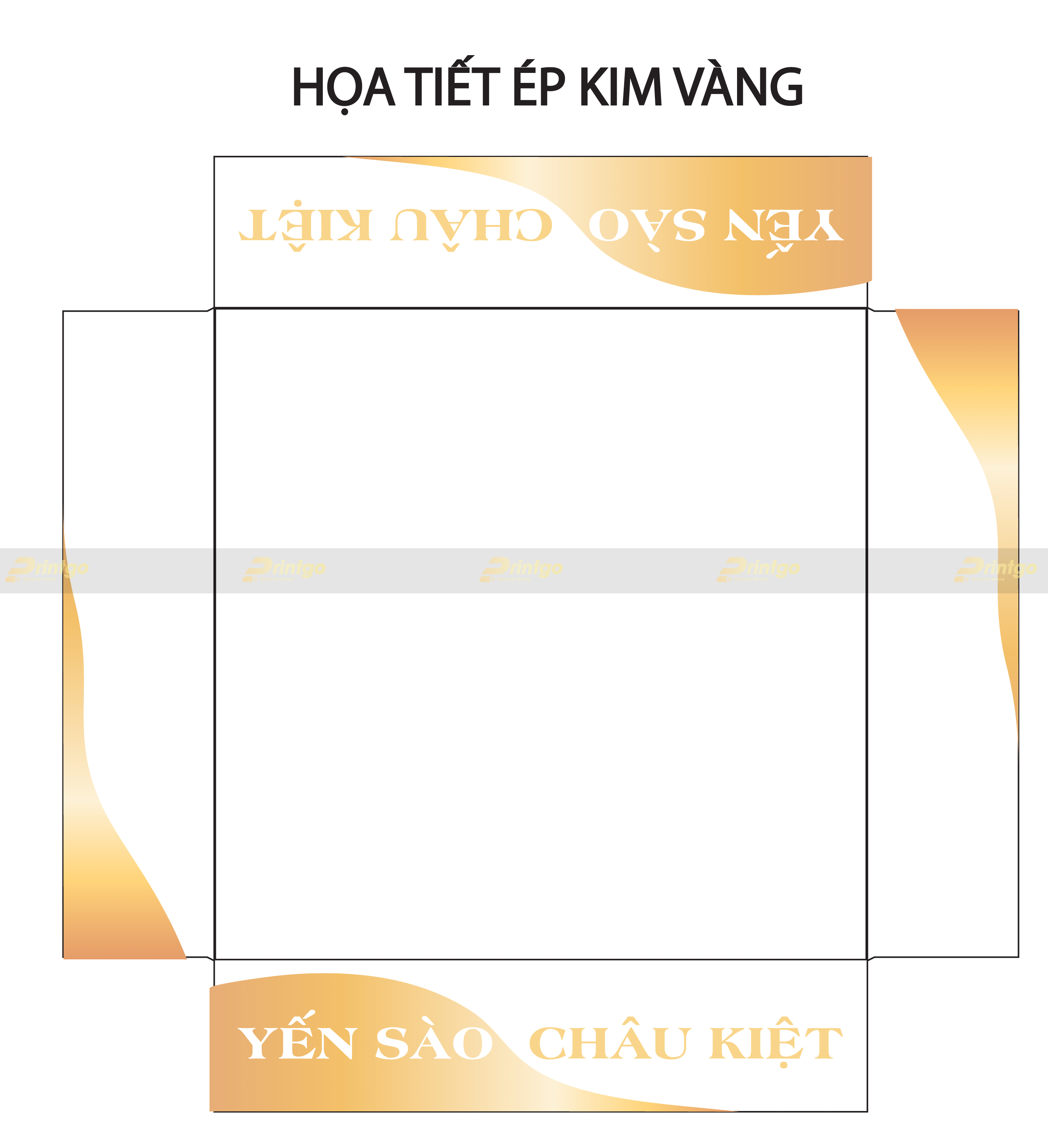 Họa tiết ở giữa được thiết kế giống như tổ yến ngoài đời thực tế và được trang trí bởi các nhành hoa tinh tế, sáng tạo. Phần họa tiết này được gia công phủ UV cát để tạo sự nổi bật. Phủ UV sẽ tạo cho bề mặt họa tiết sự bóng nhẹ, khác biệt hẳn so với những phần bình thường.