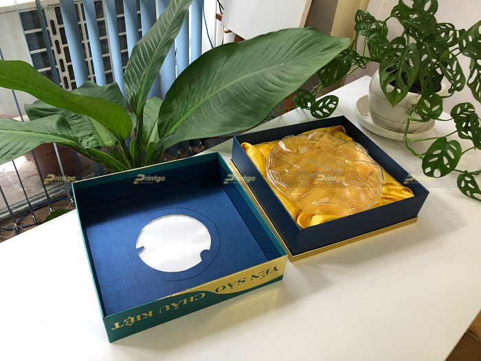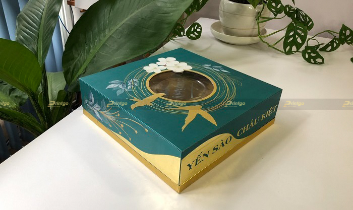 Có 2 kỹ thuật gia công chính được sử dụng với hộp yến sào: ép kim và phủ UV.