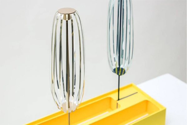 Để nói khác biệt nhất trong các thương hiệu khi ra mắt hộp bánh trung thu thì chắc chắn sẽ là Hermes đến từ Pháp - thiết kế hộp bánh nhưng không hề chứa bánh. Mặc dù không chứa bánh nhưng bù lại cho khách hàng là 2 chiếc lồng đèn. Thiết kế này dựa trên một phát minh của Nhật Bản, với cây gậy được quay giữa hai lòng bàn tay, trong quá trình di chuyển, từng chất liệu kim loại sẽ tạo thành bong bóng bảy sắc cầu vồng lơ lửng trên tay bạn. Hình dáng của chiếc cầu vồng trông giống như chiếc đèn lồng bằng giấy được sử dụng trong ngày Tết Trung thu. Hộp bánh màu vàng tươi còn giúp chúng ta dễ dàng liên tưởng đến ánh trăng tròn đêm rằm âm lịch.