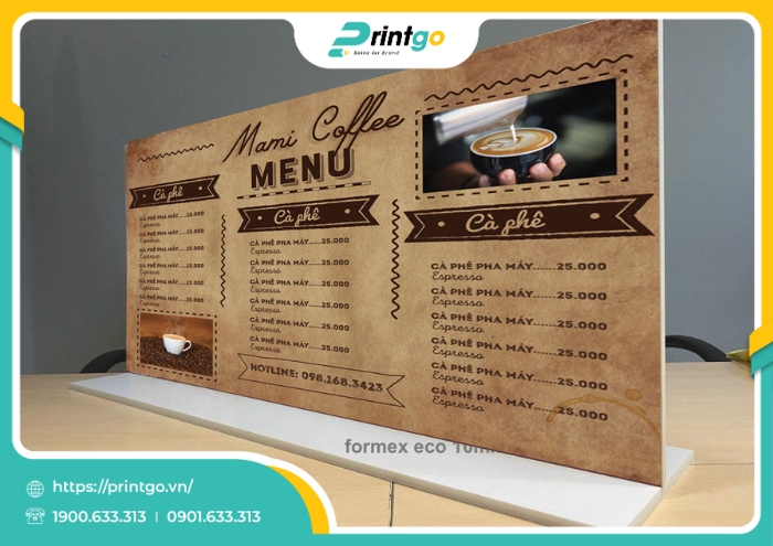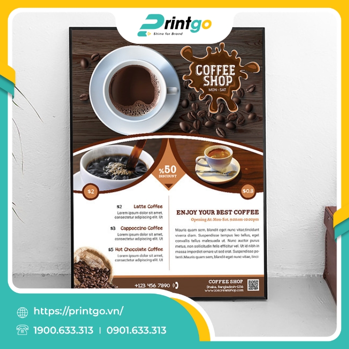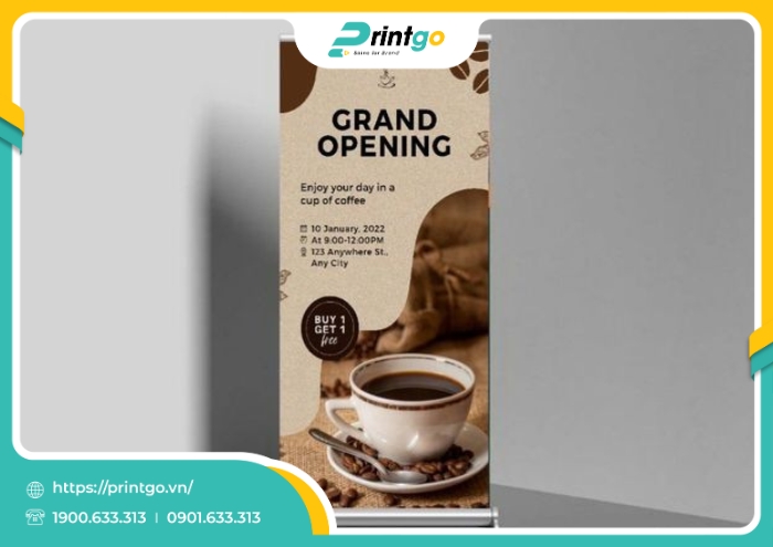 Printgo – nền tảng thiết kế và in ấn hàng đầu tại Việt Nam mang đến giải pháp in standee cà phê chất lượng cao, được chăm chút từ khâu thiết kế đến in ấn và hoàn thiện. Với đội ngũ nhân sự sáng tạo, giàu kinh nghiệm cùng hệ thống máy móc hiện đại và công nghệ in tiên tiến, Printgo cam kết mang đến những sản phẩm có hình ảnh sắc nét, màu sắc chân thực và độ bền vượt trội. Đặc biệt, quy trình thiết kế và in ấn được thực hiện đồng bộ, giúp tối ưu thời gian, giảm thiểu sai sót và loại bỏ hoàn toàn sự phụ thuộc vào bên thứ ba. Nhờ đó, khách hàng không chỉ tiết kiệm chi phí mà còn yên tâm về tiến độ và chất lượng sản phẩm. Với mức giá cạnh tranh cùng nhiều chính sách ưu đãi linh hoạt, chúng tôi tự tin là đối tác in standee cà phê đáng tin cậy, đồng hành cùng thương hiệu của bạn trong hành trình chinh phục khách hàng.