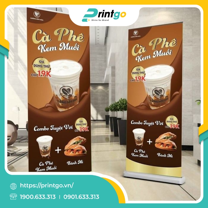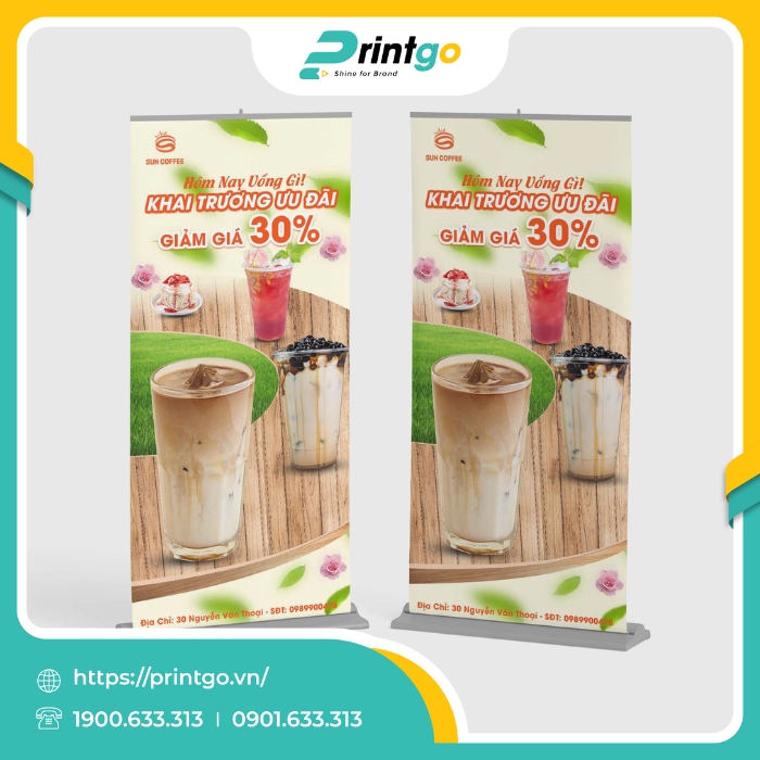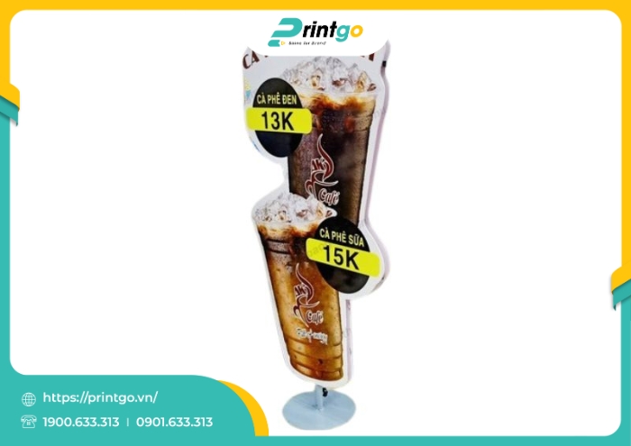 Trong lĩnh vực kinh doanh cà phê, việc thu hút khách hàng không chỉ phụ thuộc vào chất lượng đồ uống mà còn nằm ở cách thương hiệu truyền tải giá trị và tạo dựng trải nghiệm. Vì vậy, ngày càng nhiều quán cà phê đã chủ động đầu tư vào các công cụ quảng bá trực quan, trong đó standee cà phê trở thành một giải pháp nổi bật nhờ tính hiệu quả cao và chi phí hợp lý. Không đơn thuần là bảng thông báo sản phẩm hay chương trình ưu đãi, standee còn đóng vai trò như một chi tiết trang trí sinh động, góp phần định hình không gian quán và khơi gợi sự tương tác từ phía khách hàng. Nắm bắt được điều ấy, Printgo mang đến giải pháp thiết kế và in standee cà phê chuyên nghiệp, giúp thương hiệu vừa truyền tải thông điệp một cách tinh tế, vừa khẳng định dấu ấn trong lòng người tiêu dùng.
