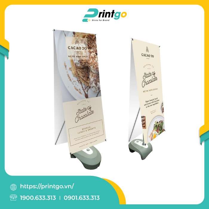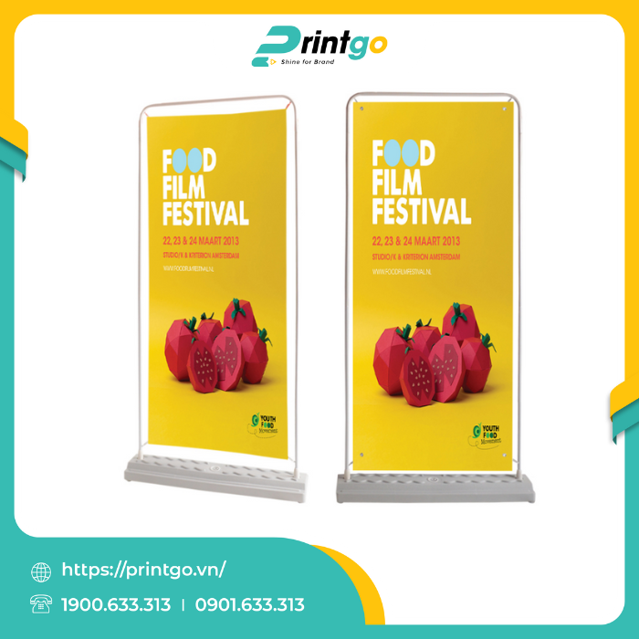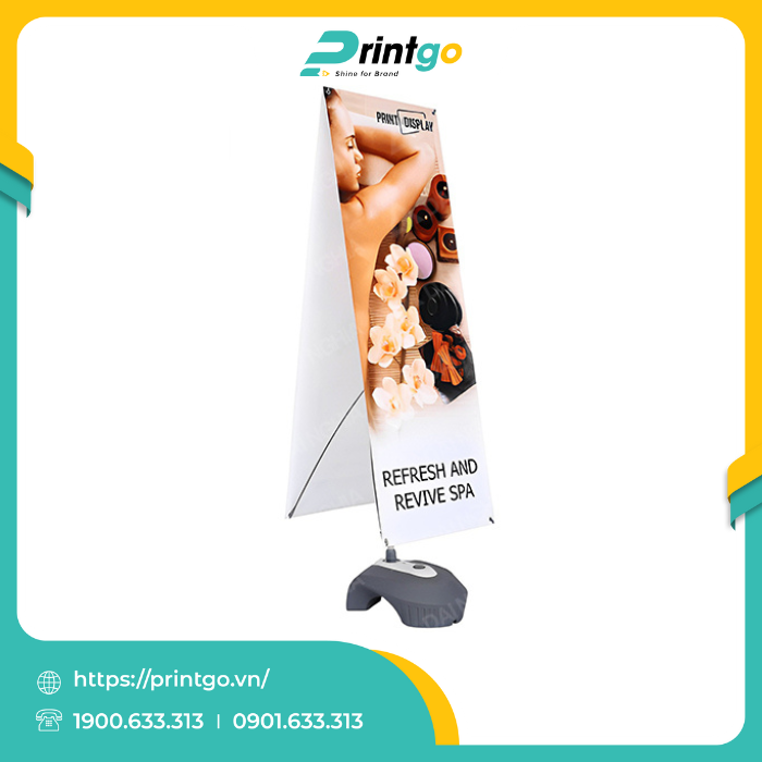 Trong hoạt động marketing và quảng bá thương hiệu, standee đế nước không chỉ là công cụ hỗ trợ truyền thông hiệu quả mà còn góp phần nâng cao hình ảnh chuyên nghiệp tại điểm bán, sự kiện hoặc hội chợ triển lãm. Hiểu được tầm quan trọng đó, Printgo cung cấp dịch vụ thiết kế và in standee đế nước chất lượng cao, giúp doanh nghiệp sở hữu những mẫu standee nổi bật, thu hút ánh nhìn và phù hợp với từng chiến dịch cụ thể.