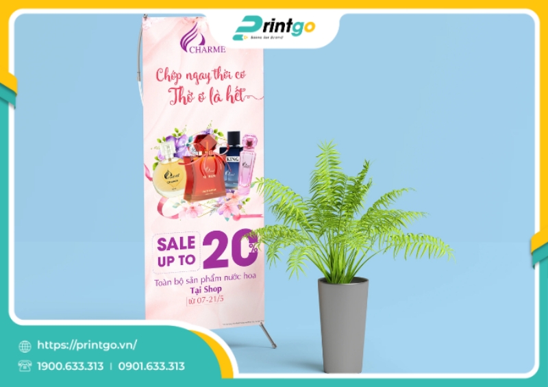 Với khả năng thay đổi nội dung nhanh chóng, standee nước hoa giá chữ X là lựa chọn lý tưởng cho các chiến dịch ngắn hạn, liên tục thay đổi thông điệp nhưng vẫn cần sự chỉn chu và chuyên nghiệp trong cách trình bày.