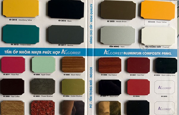 Tấm alu có đa dạng màu sắc với hơn 30 màu và ngoài ra còn có thể kết hợp thêm những hoa tiết hoa văn giả đá hoặc phủ gỗ. Tùy vào nhu cầu cũng như ứng dụng cho từng hạng mục công trình, mà có thể lựa chọn màu sắc và họa tiết trên bề mặt alu phù hợp. Giá của tấm alu sẽ dựa vào độ dày cũng như thời gian bảo hành của đơn vị cung cấp tấm alu.