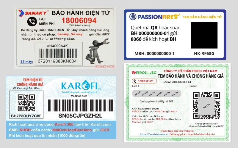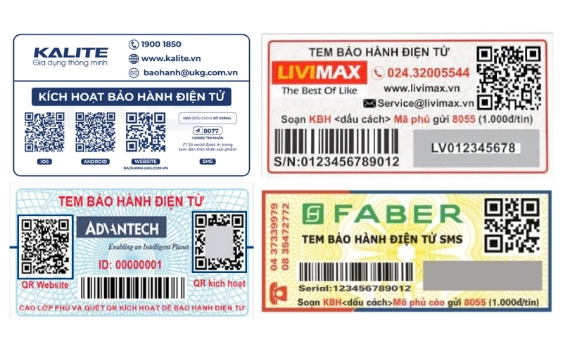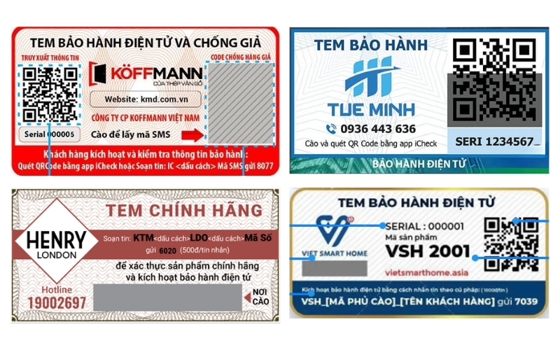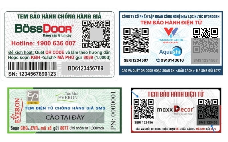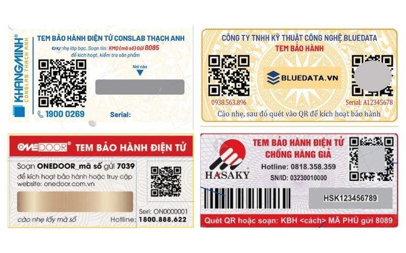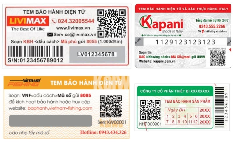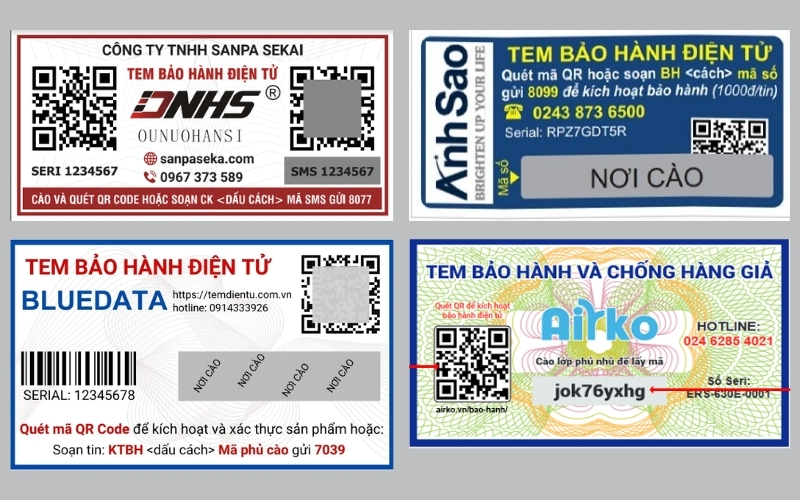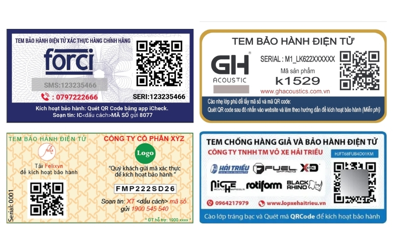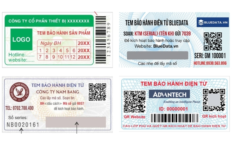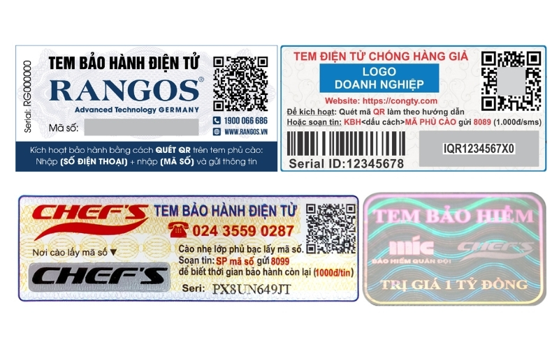 Tem bảo hành điện tử hiện nay có nhiều dạng khác nhau, phù hợp với từng loại sản phẩm và nhu cầu quản lý của doanh nghiệp. Việc hiểu rõ các loại tem sẽ giúp bạn chọn giải pháp phù hợp, vừa tiện lợi cho khách hàng, vừa tối ưu quản lý bảo hành. Dưới đây là những loại tem phổ biến nhất: