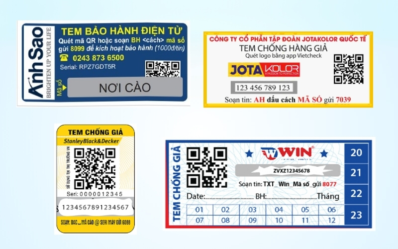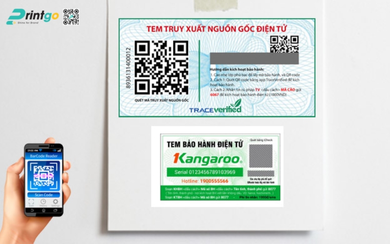 Tem QR code là lựa chọn được dùng nhiều nhất vì sự tiện lợi và chi phí hợp lý. Chỉ cần một lần quét bằng điện thoại, khách hàng sẽ xem ngay thông tin sản phẩm, thời hạn bảo hành và cả khuyến mãi kèm theo — giúp tạo cảm giác minh bạch và an tâm. Khi thiết kế, nhớ để QR ở vị trí dễ quét, kèm logo và một dòng hướng dẫn ngắn để ai cũng biết cách dùng.