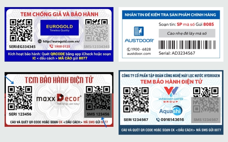 Ở những khu vực smartphone chưa phổ biến hoặc khi muốn thêm lớp xác thực, tem tích hợp SMS là giải pháp thực tế: khách hàng gửi mã in trên tem đến một số dịch vụ và sẽ nhận về thông tin bảo hành ngay. Cách này đơn giản, không đòi hỏi ứng dụng, phù hợp cho hàng tiêu dùng đại trà. Thiết kế tem SMS cần mã số ngắn gọn và hướng dẫn cú pháp nhắn tin rõ ràng để ai cũng thực hiện được.