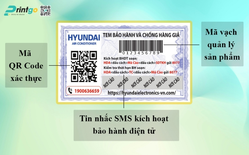 Sau đó, những thông tin này được chuyển thành một mã duy nhất, thường là mã QR code, mã vạch hoặc chip NFC, được in trực tiếp lên tem bảo hành điện tử.