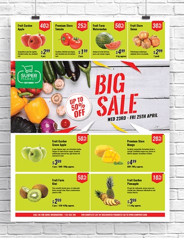 Tờ rơi quảng cáo siêu thị là một loại phương tiện truyền thông cho những sản phẩm được bày bán trong siêu thị, được in màu lên khổ giấy A4 hoặc A3. Nội dung của tờ rơi thường có hình ảnh, mức giá cả và thông tin tóm tắt về sản phẩm mà nó quảng cáo. Với hình thức bắt mắt, độc đáo và đa dạng sẽ giúp các siêu thị tăng khả năng tiếp cận với khách hàng và tăng doanh số bán hàng một cách đáng kể. Bên cạnh đó, quảng cáo qua mẫu in tờ rơi cũng giúp cung cấp các thông tin, nội dung chi tiết về chương trình khuyến mãi một cách đầy đủ và chính xác. Đây cũng là bí quyết giúp siêu thị tăng uy tín, phong cách làm việc chuyên nghiệp và khiến khách hàng tin tưởng khi mua hàng tại siêu thị của bạn hơn. Sau đây, Printgo xin đưa tới độc giả cùng chiêm ngưỡng listing 10+ mẫu thiết kế tờ rơi siêu thị đẹp, độc đáo trên thị trường siêu thị hiện nay: