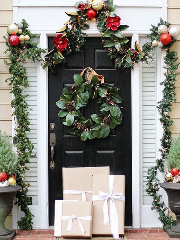 Vòng nguyệt quế kết quả thông treo cửa là biểu tượng của ngày lễ Giáng sinh. Nếu bạn muốn trang trí noel ngoài trời cho ngôi nhà của mình thì nhất định đừng bỏ qua item này nhé. Vòng hoa treo cửa rất dễ kiếm trên thị trường. Bạn có thể tìm thấy ở các cửa tiệm bán đồ trang trí nhà cửa hay trên các sàn thương mại điện tử. Đặc biệt, bạn hoàn toàn có thể tự làm một chiếc vòng hoa treo cửa mang đậm phong cách của riêng mình. Chắc chắn bất cứ vị khách nào cũng sẽ trầm trồ trước vòng hoa treo cửa của bạn.