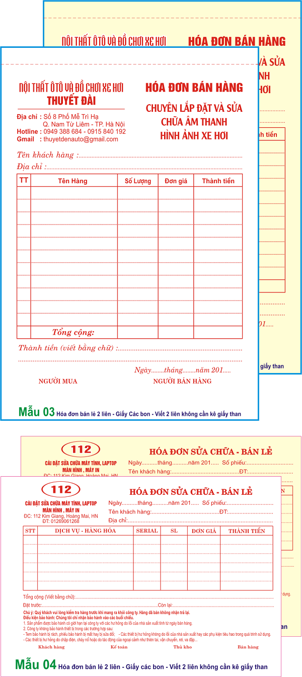 Quyển hóa đơn các cửa hàng thường sử dụng
