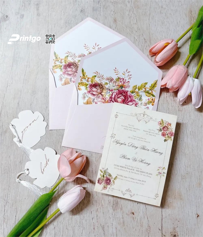 Bên ngoài thiệp: Nên ghi là “Thiệp báo hỷ” hoặc “Thiệp chúc mừng”, không ghi “Thiệp cưới” để tránh hiểu lầm là thiệp mời.