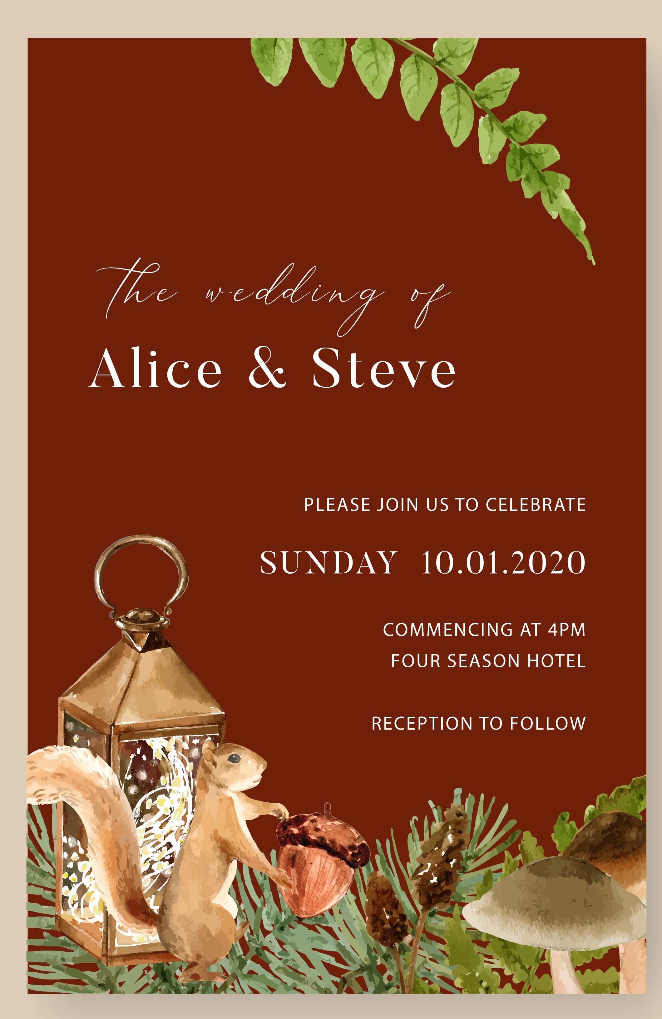 Mẫu thiệp mời cưới DKP-TM 000175: Mang đến một bức tranh thiên nhiên rực rỡ, mẫu thiệp cưới này đã tạo ra vẻ đẹp tự nhiên, nổi bật mà ít mẫu thiệp cưới nào có được. Phông nền sử dụng cho thiệp cưới là tông màu đỏ gạch nổi bật, màu sắc này rát phù hợp cho những ngày vui như đám cưới. Màu đỏ mang lại vẻ đẹp của sự may mắn, hạnh phúc, bình an, đây cũng là lời chúc phúc tốt đẹp nhất muốn gửi đến cô dau chú rể khi sử dụng mẫu thiệp cưới này. Việc sắp xếp bố cục lạ mắt, tên riêng của cô dâu chú rể đặt bên trái, phần thông tin còn lại đặt ở bên phải của thiệp, toàn bộ tạo ra bố cục cân bằng, rất hợp lí. Với những sinh vật đáng yêu xuất hiện trên tấm thiệp, nó lại càng mang đến dáng vẻ sinh động, hiếm thấy, khiến mẫu thiệp cưới này dồi dào sinh lực đến hiếm có.