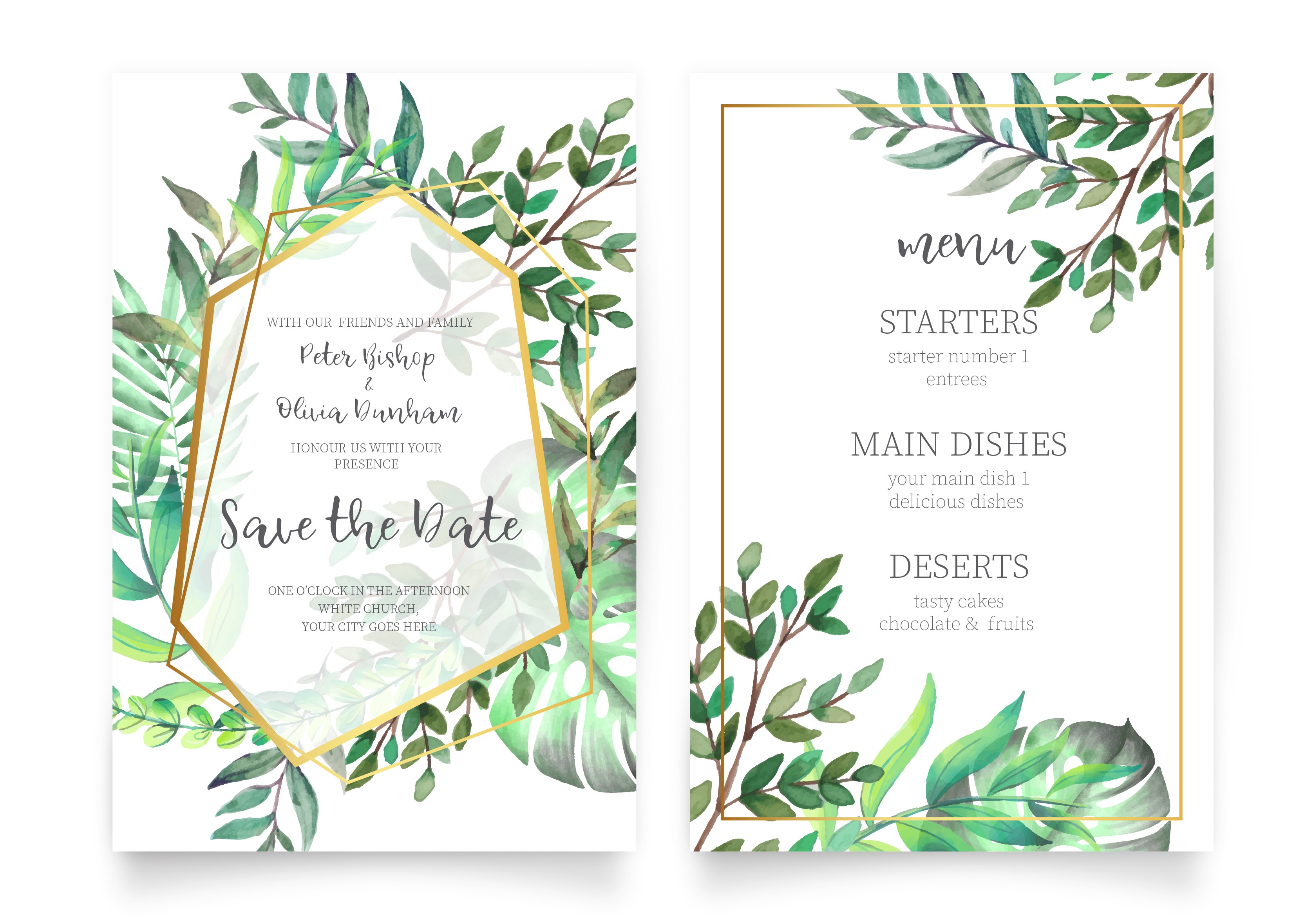 Mẫu thiệp mời cưới DKP-TM 000256: Màu xanh lá cây vốn được coi là biểu tượng của sự phát triển, tái sinh. Ở nhiều nước tư bản nó còn là màu sắc của sự thánh thiện và may mắn. Chính vì vậy, khi sử dụng họa tiết hoa văn với sắc xanh lá làm chủ đạo, mẫu thiệp cưới này như muốn gửi đến cô dâu chú rể những lời chúc tốt đẹp nhất cho ngày trọng đại của họ vậy. Ngoài những chiếc lá, cành cây in trên thiệp, còn xuất hiện những đường viền khung mạ vàng như càng làm nổi bật lên phần thông tin chi tiết về đám cưới ở bên trong. Phông chữ mềm mại cùng cách sắp xếp thông tin mạch lạc, rõ ràng cũng là một điểm cộng lớn cho mẫu thiệp cưới này.