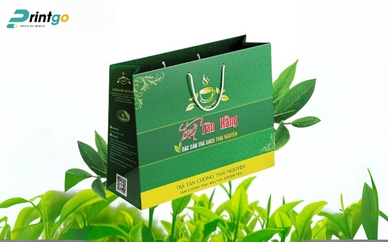 Túi xách là xu hướng tiện dụng và thời thượng cho khách hàng năng động. Dễ mang theo với thiết kế quai cầm chắc chắn, phù hợp với người dùng thường xuyên di chuyển. In ấn màu sắc tươi sáng, hoa văn hiện đại, hợp với trà thảo mộc hoặc trà detox mang phong cách trẻ trung. Thiết kế bao bì trà có thể làm từ giấy kraft hoặc chất liệu tái chế, vừa đẹp vừa thân thiện môi trường.