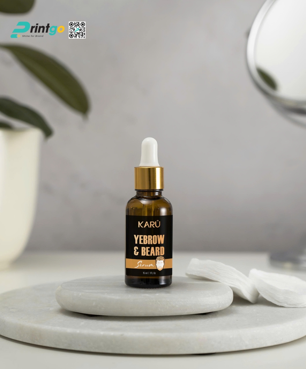 Bao bì sản phẩm là lớp vỏ đầu tiên kết nối thương hiệu với khách hàng – đặc biệt trong ngành mỹ phẩm, nơi cảm nhận thị giác và xúc giác ảnh hưởng trực tiếp đến quyết định mua hàng. Với sản phẩm serum thuốc mọc râu Karu, Printgo đã giữ nguyên tinh thần thẩm mỹ từ logo để mở rộng lên thiết kế hộp đựng mỹ phẩm nam: tối giản, nam tính và rõ ràng về công dụng.