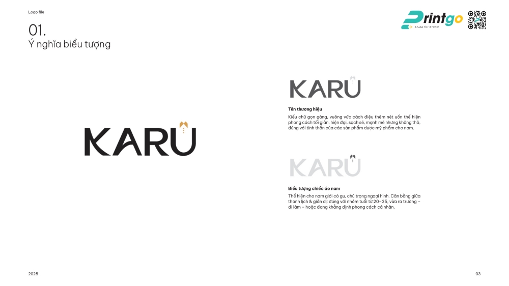 Chính vì vậy, việc đầu tư vào hệ thống nhận diện thương hiệu – từ thiết kế logo mỹ phẩm nam, lựa chọn màu sắc, font chữ, đến thiết kế hộp đựng mỹ phẩm nam – là điều không thể xem nhẹ. Đây chính là những yếu tố đầu tiên mà khách hàng tiếp cận, là “điểm chạm” trực quan giúp hình thành cảm nhận ban đầu và thúc đẩy hành vi trải nghiệm. Printgo đã được Karu lựa chọn là đối tác chiến lược, đồng hành trong toàn bộ hành trình xây dựng diện mạo thương hiệu từ con số 0, với sứ mệnh tạo nên một hình ảnh thương hiệu mỹ phẩm nam không chỉ mạnh mẽ, nam tính mà còn có cá tính riêng và dễ ghi nhớ.