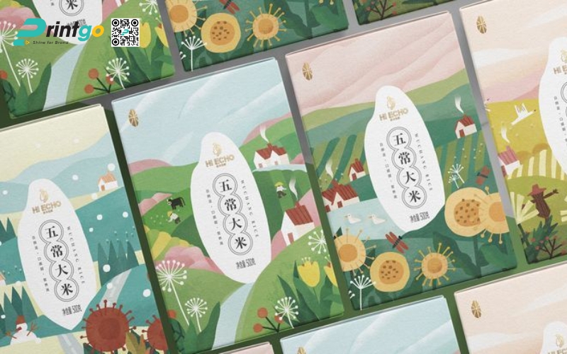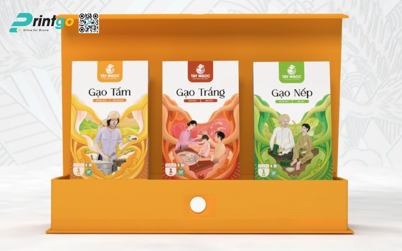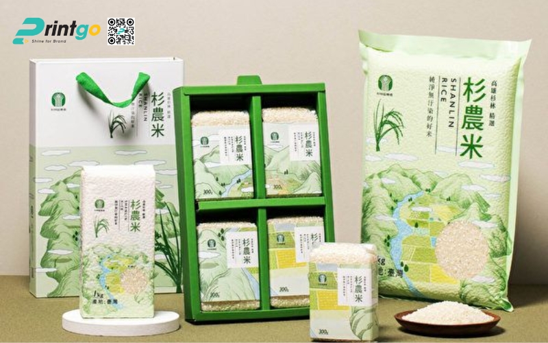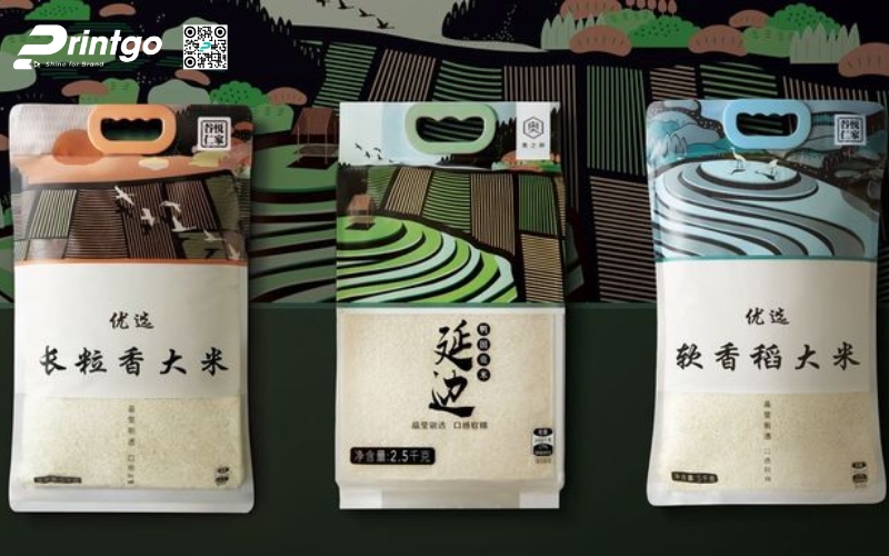 → Từ đó, Printgo đưa ra phương án chất liệu, công nghệ in và hoàn thiện bao bì phù hợp với từng dòng sản phẩm gạo (gạo hữu cơ, gạo đặc sản, gạo cao cấp...).