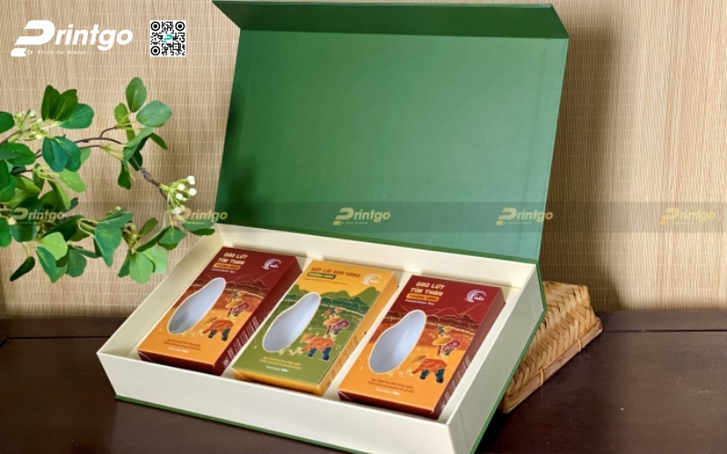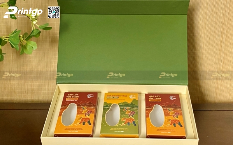 Bên cạnh đó, hộp cứng carton cũng sở hữu nhiều kiểu dáng đa dạng và linh hoạt như hộp âm dương, hộp nam châm kèm túi hoặc hộp có quai xách, phù hợp với nhu cầu và sở thích khác nhau của từng khách hàng.Thiết kế nam châm kèm túi giấy, là món quà hoàn hảo để dành tặng đối tác, bạn bè Để nâng cao tính thẩm mỹ, hộp cứng carton sử dụng công nghệ in offset tiên tiến, kết hợp với các kỹ thuật in ấn cao cấp như ép kim, dập nổi, phủ UV, giúp bề mặt hộp trở nên bắt mắt và thu hút hơn. Qua đó, biến bao bì gạo từ một phương tiện đóng gói đơn thuần thành một phần quan trọng trong trải nghiệm quà tặng, thể hiện sự tinh tế và đẳng cấp của thương hiệu.