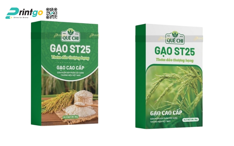 Bên cạnh bao bì nhựa, hộp đựng gạo cũng đang trở thành một xu hướng được các doanh nghiệp ưa chuộng và sử dụng rộng rãi. Các loại hộp giấy như hộp sóng carton, hộp giấy Ivory, hộp cứng carton ép lạnh không chỉ bảo vệ sản phẩm hiệu quả mà còn mang đến diện mạo sang trọng, tinh tế, thu hút khách hàng ngay từ ánh nhìn đầu tiên.