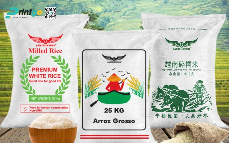 Đối với bao bì gạo xuất khẩu, công nghệ in ấn thường được ứng dụng là in ống đồng và in flexo. Nhờ đó, các chi tiết như tên sản phẩm, hình ảnh, logo và thông tin thương hiệu được trình bày một cách chuyên nghiệp, giúp người tiêu dùng quốc tế dễ dàng nhận diện và hiểu rõ về sản phẩm, đồng thời nâng cao giá trị thương hiệu trên thị trường.