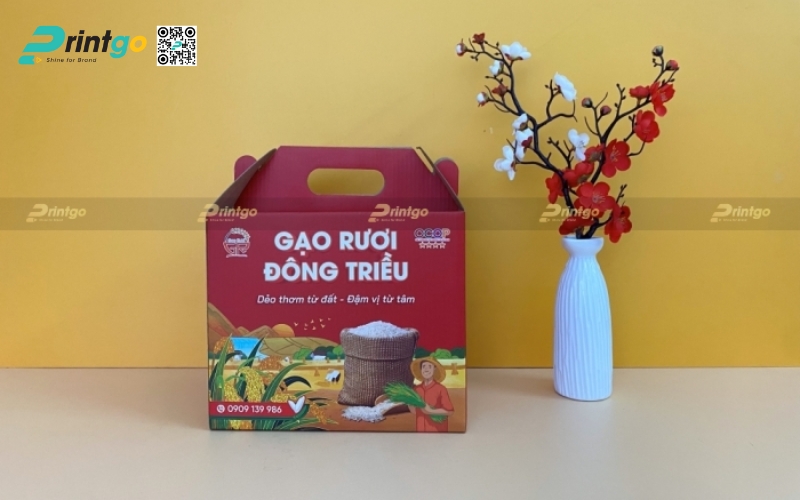 Bên cạnh đó, với công nghệ in offset hiện đại, hộp sóng không chỉ sở hữu vẻ ngoài bắt mắt mà còn đảm bảo chất lượng bền đẹp theo thời gian. Nhờ đó, doanh nghiệp có thể tận dụng bao bì gạo như một công cụ truyền thông hiệu quả, giúp thương hiệu dễ dàng ghi dấu ấn trong tâm trí khách hàng.