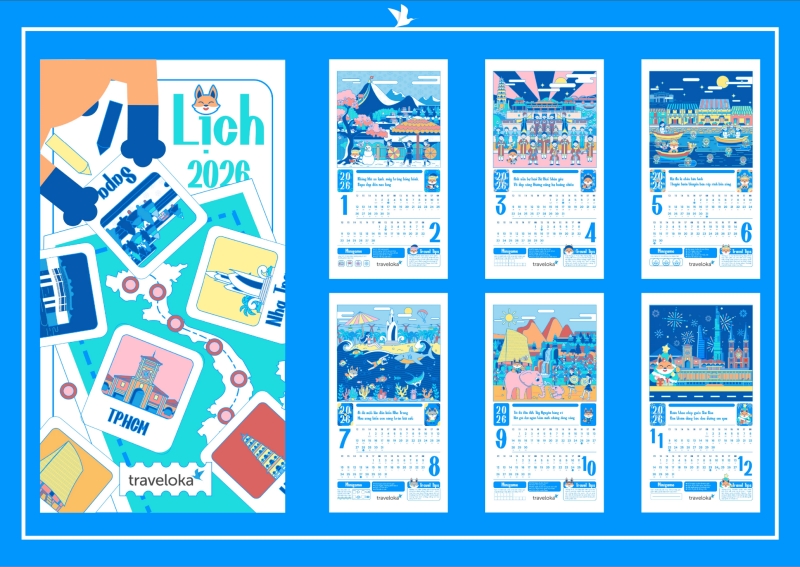 Bộ thiết kế lịch Tết “Hành trình cùng Tavi” mang đến làn gió mới cho mùa Tết Bính Ngọ 2026 khi kể lại câu chuyện khám phá Việt Nam qua góc nhìn trẻ trung và hiện đại. Lấy cảm hứng từ tinh thần du lịch và trải nghiệm của thế hệ mới, bộ lịch theo chân Tavi – chú cáo nhỏ tinh nghịch, thông minh trong hành trình từ Bắc chí Nam, khám phá những vùng đất mang đậm bản sắc văn hóa và thiên nhiên Việt. Mỗi trang lịch là một khung hình sống động, nơi sắc màu, cảm xúc và câu chuyện hòa quyện thành hành trình thị giác đầy cảm hứng.