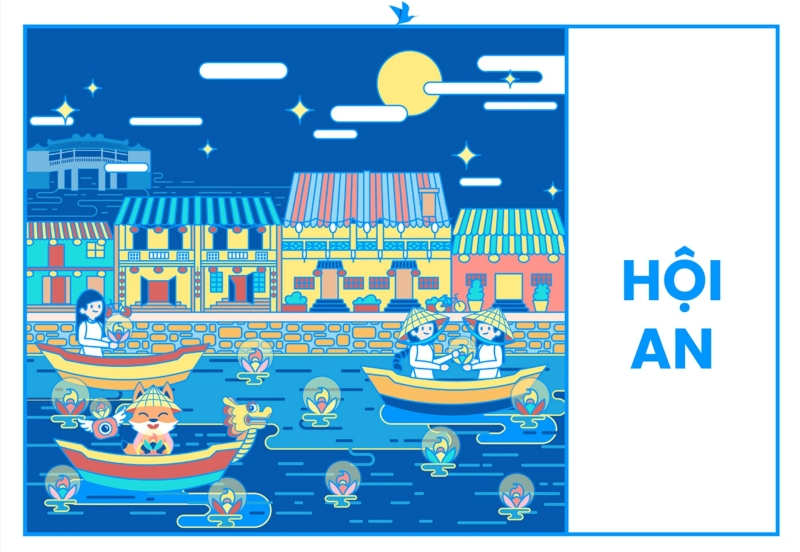 Hội An: Tái hiện vẻ đẹp phố cổ lung linh dưới ánh trăng, những mái nhà ngói vàng và đèn lồng nhiều màu phản chiếu trên mặt nước sông Hoài. Tavi cùng người dân thả hoa đăng, mang thông điệp bình an, đoàn viên và niềm tin hướng tới năm mới.
