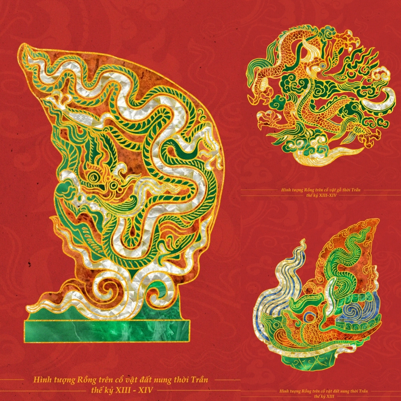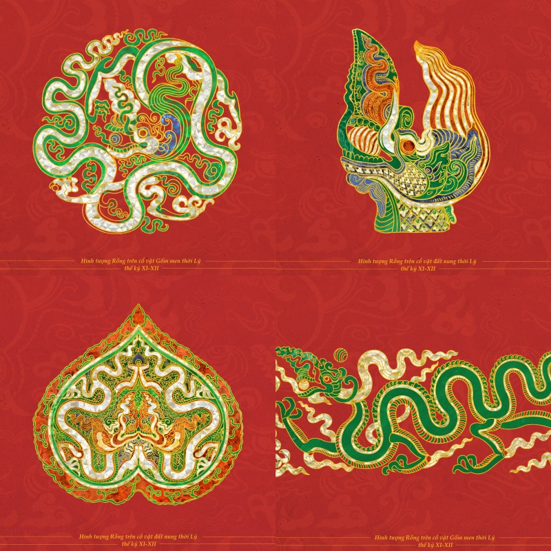 Rồng thời Lý (thế kỷ XI – XII): mang dáng thanh thoát, thân mềm mại như dải lụa, biểu trưng cho khởi nguyên văn minh Đại Việt và khát vọng độc lập tự chủ.