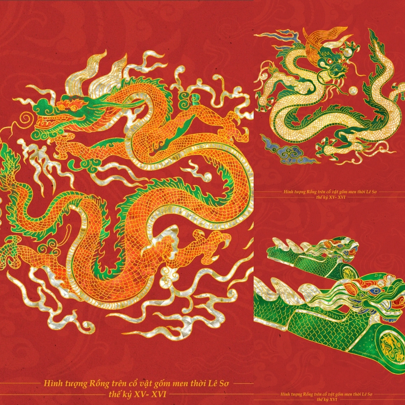 Rồng thời Lê Sơ (thế kỷ XV – XVI): dáng dấp cân xứng, oai nghi, thể hiện trật tự, quyền uy và thời kỳ thịnh trị của vương triều.