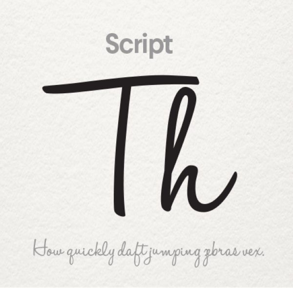 Kiểu chữ script mô phỏng chữ viết tay. Những phông chữ này (như Allura hoặc Pacifico) có thể là một cách tuyệt vời để thêm cảm giác sang trọng hoặc nữ tính cho thương hiệu của bạn.