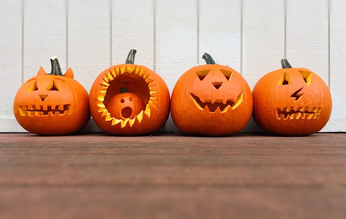 Bí ngô là linh vật không thể thiếu trong mùa Halloween hằng năm. Nếu không có điều kiện “sắm”những quả bí khổng lồ được cắt tỉa độc đáo, bạn có thể thay thế bằng bí ngô nhựa hoặc đèn lồng kết hợp đèn led để trang trí cũng rất đẹp.