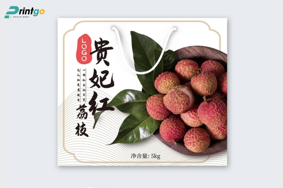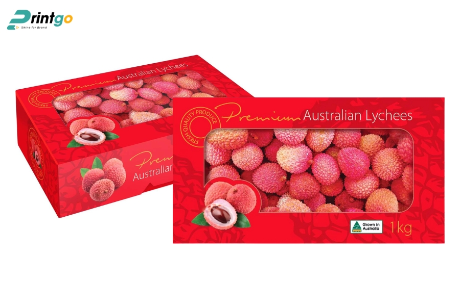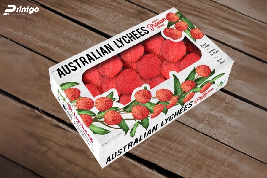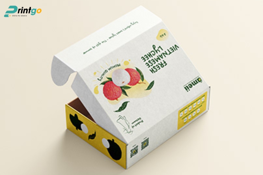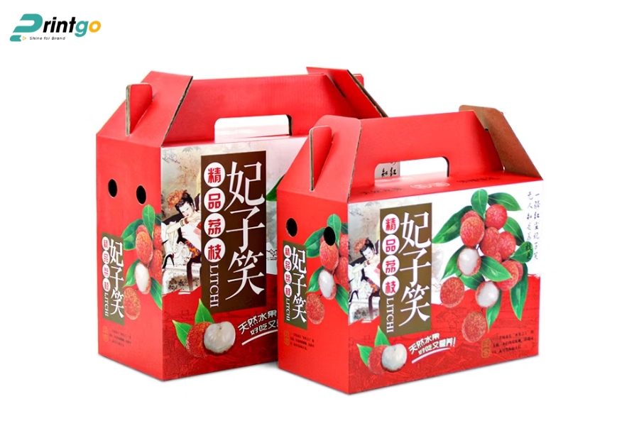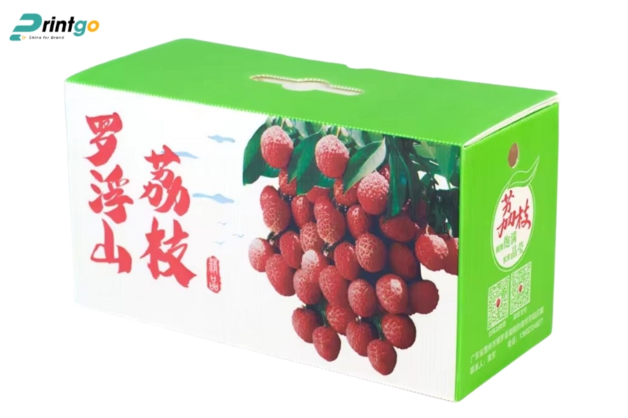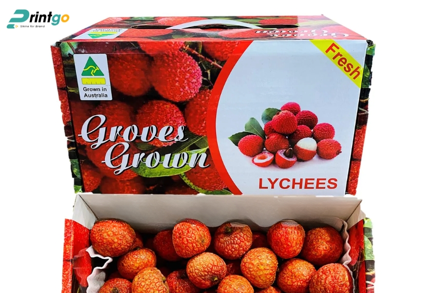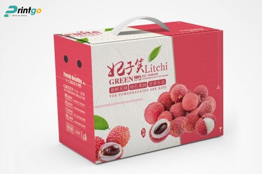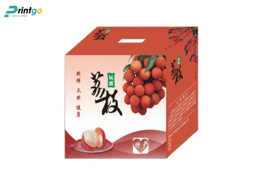 - Hạn chế ẩm ướt và bụi bẩn: Chọn carton chống ẩm, có thể cán màng hoặc phủ UV mờ để ngăn hơi ẩm xâm nhập. Giúp vải thiều luôn khô ráo, giữ mùi vị và hình thức tốt trong suốt hành trình.