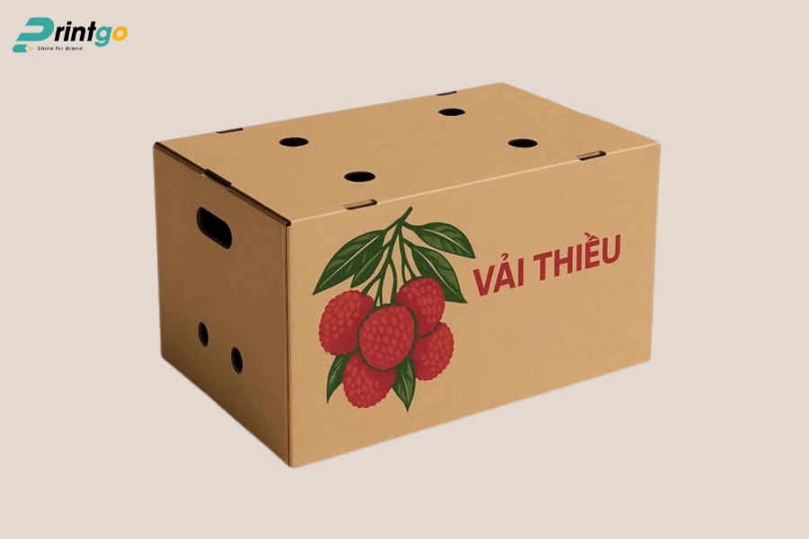 Tuy nhiên, do đặc tính dễ dập nát, dễ hỏng nếu không được bảo quản và đóng gói đúng cách, quá trình vận chuyển vải thiều (đặc biệt là đi xa hoặc xuất khẩu) gặp không ít khó khăn. Hiểu rõ tầm quan trọng ấy, Printgo mang đến giải pháp thiết kế và in ấn thùng carton đựng vải thiều chuyên nghiệp, giúp nhà vườn, hợp tác xã và doanh nghiệp nông sản bảo vệ chất lượng nông sản, đồng thời nâng cao giá trị thương hiệu vải thiều Việt trên thị trường nội địa và quốc tế.