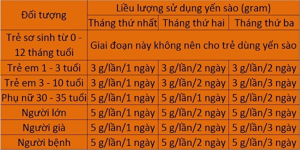 Gợi ý về liều lượng sử dụng yến sào