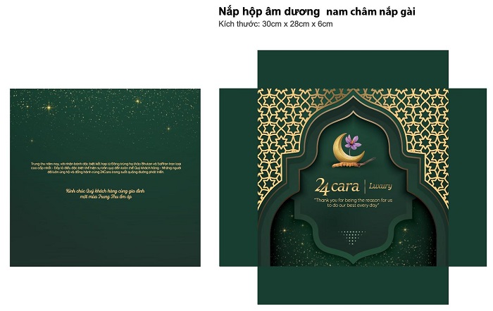 Cùng khám phá chi tiết thiết kế cũng như quy cách in ấn của bộ hộp bánh trung thu nắp nam châm của 24 Cara dưới đây!