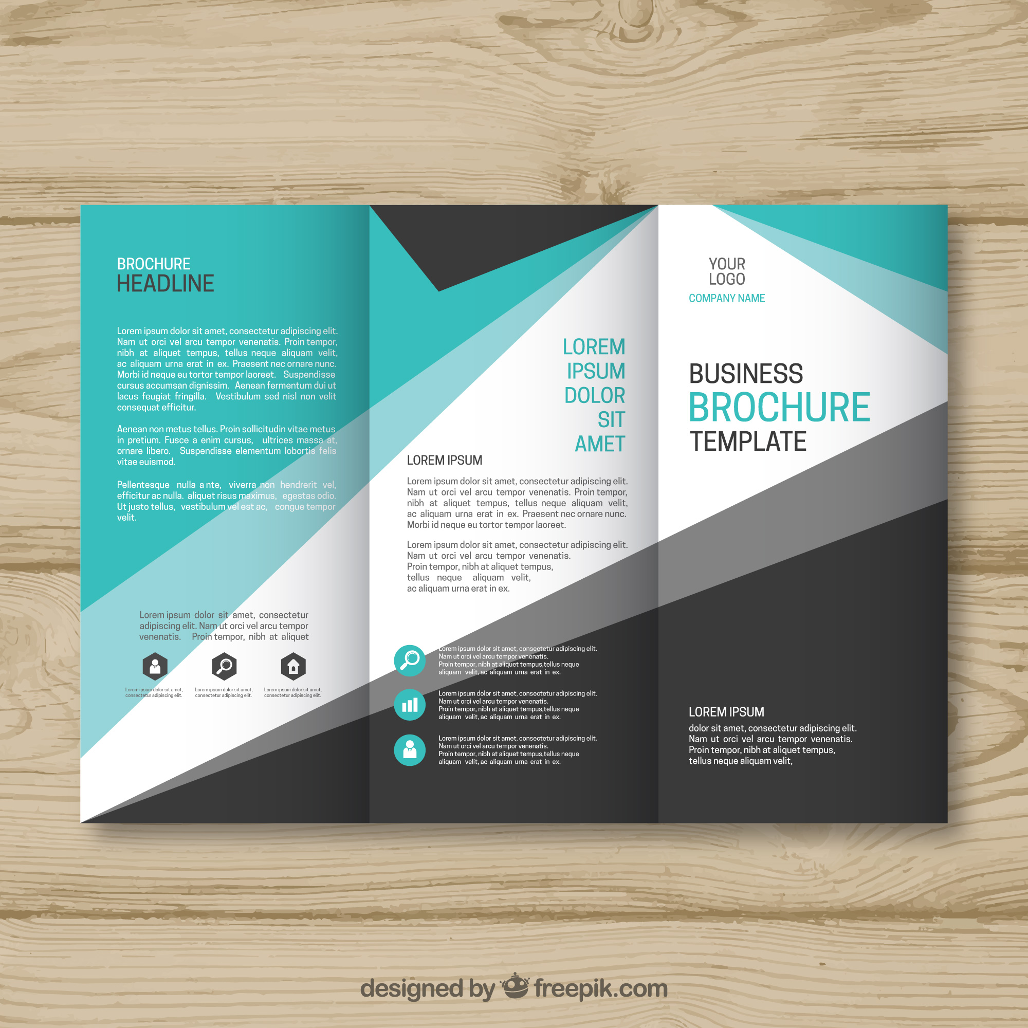 Mẫu tờ gấp HNP-BC 000058 theo đuổi phong cách văn phòng hiện đại, sáng tạo và chuyên nghiệp với việc sử dụng ba màu chủ đạo xanh dương, đen và trắng để tạo hình. Ba mảng màu riêng biệt được thiết kế tách biệt, vát chéo khéo léo tạo nên hình tam giác trắng ở chính giữa khi mở tất cả các trang tờ gấp chính là điểm nhất. Phần thông tin văn bản của tờ gấp cũng được linh hoạt thay đổi màu chữ tùy trên các mảng nền, giúp người đọc dễ dàng nắm bắt thông tin mà không bị rối mắt. Phong cách thiết kế ấn tượng, sáng tạo nhưng không quá cầu kỳ của HNP-BC 000058 phù hợp với nhiều ngành nghề như kinh doanh, bán hàng, dịch vụ,...