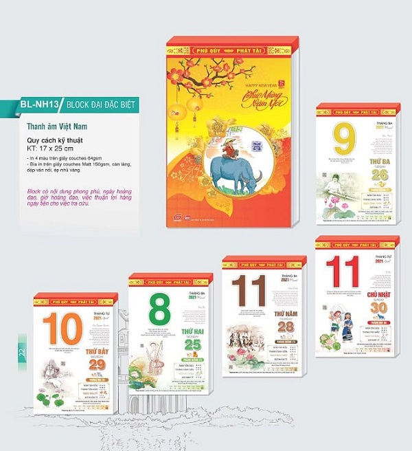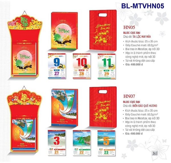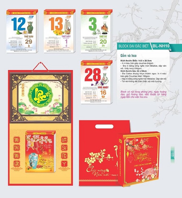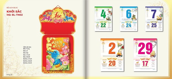 Mẫu lịch Bloc in ấn theo chủ đề Lộc
