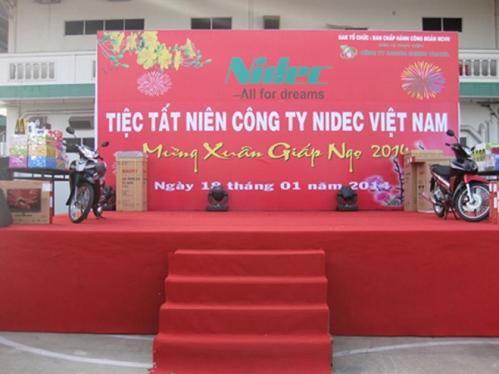 Backdrop tổng kết cuối năm hiểu một cách đơn giản là phông nền, được đặt ở chính giữa sân khấu trong bữa tiệc tất niên. Bên trên backdrop, người ta thường in logo thông tin công ty hoặc nội dung chủ đề của bữa tiệc. Ngoài ra, với những bữa tiệc quy mô lớn, backdrop còn được đặt tại vị trí cửa ra vào nhằm tạo sự chú ý của quan khách tham dự. Khác với tấm backdrop sự kiện thông thường, backdrop dành cho tiệc tất niên hướng đến màu sắc tươi sáng, mang đậm phong cách và tinh thần Tết. Với những doanh nghiệp lớn, đây còn là hình thức truyền thông hiệu quả để quảng bá và giới thiệu hình ảnh thương hiệu đến tất cả mọi người trong và ngoài công ty.