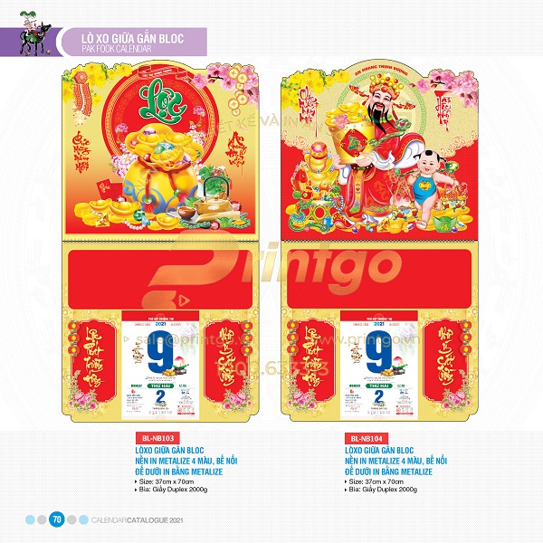 Những mẫu lịch tết “Tài lộc” đa số là lịch bloc, lịch lò xo giữa, với những hình tượng phong thủy được bế nổi trên khánh lịch, tạo hiệu ứng trang trí và thẩm mỹ, thu hút ánh nhìn. Ngoài ra cũng có một số mẫu lịch để bàn và lịch treo tường được được thiết kế theo chủ đề này.