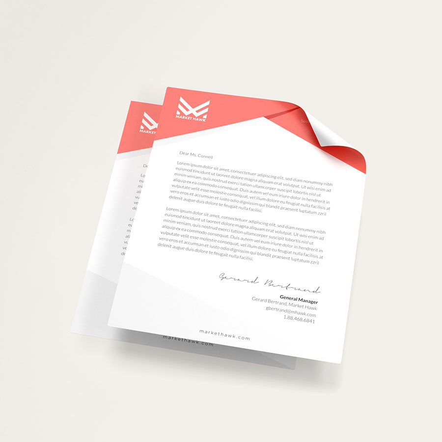 Các thông tin thường có trong tiêu đề thư là logo, tên công ty, website, số điện thoại, email và địa chỉ. Tùy vào mong muốn của bạn mà phần thông tin này có thể đặt ở trên hoặc ở dưới tờ giấy. Mẫu thiết kế logo ở trên và thông tin ở dưới tạo sự đối xứng cũng rất được ưa chuộng!
