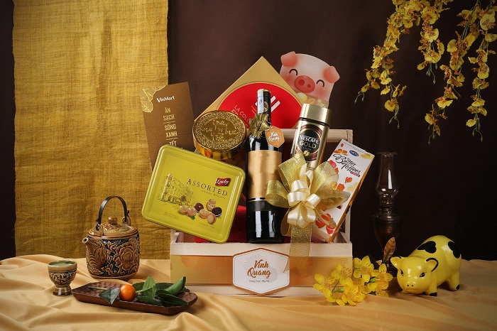 Mỗi set quà Tết thường bao gồm rượu ngoại, bánh kẹo, mứt tết, cà phê, trà xanh,...Bạn có thể thay đổi linh hoạt các thành phần dựa theo sở thích và nhu cầu chung của mọi người. Ví dụ, với những nhân viên đã lập gia đình và có trẻ nhỏ, những giỏ quà đầy ắp bánh kẹo sẽ là món quà vô cùng ấm áp và ý nghĩa. Hương vị ngọt ngào từ các loại bánh kẹo luôn có sức hút với trẻ em, giúp chúng thêm vui vẻ, yêu đời và đón chào một mùa Tết trọn vẹn.