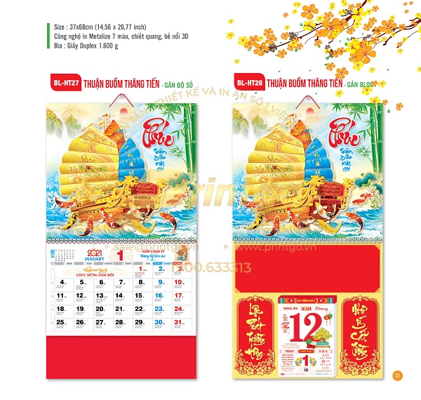 Nằm trong bộ sưu tập lịch tết chào đón năm mới, những mẫu lịch tết Thuận buồm xuôi gió mà chúng tôi giới thiệu trong bài viết dưới đây sẽ giúp quý khách hàng có thêm những tham khảo để lựa chọn được cuốn lịch tết ưng ý nhất.
